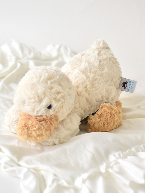 店頭でかなり人気のこのアヒルちゃんは、寝そべったポーズでユーモラス。ベビーが好きなタオルっぽい素材で優しいさわり心地。大人でも癒されちゃいます!