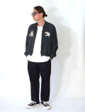往年のスカジャンを上品にアップデートさせ、シャツのように軽い生地なので春夏に軽い羽織りとしてコーディーネートがしやすいアイテムです。