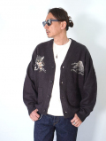 アメカジと相性の良いモヘアカーデにスカジャン柄、それもヴィンテージのスカジャンから取った「CAMP FUJI」の富士山と龍の柄で作られました。